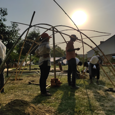 The participants of the workshop were then briefed on the principles of the shell with respect to forces and form finding. They were encouraged to delve into a small-scale model before the actual hands-on activities on site.